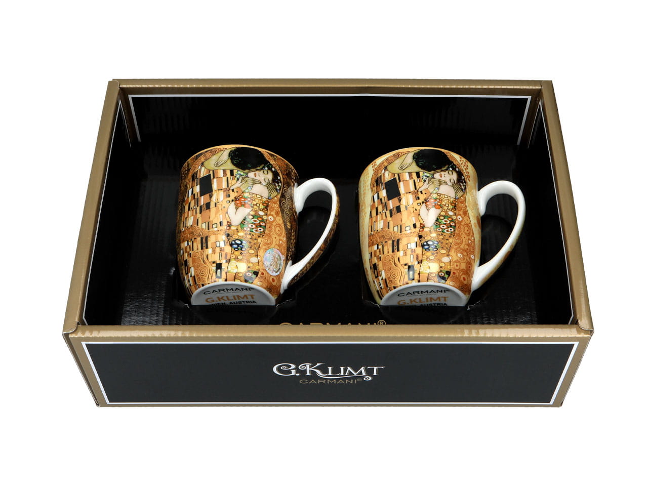 Carmani 2 kubki 400 ml - G. Klimt, Pocałunek (kremowe i brązowe tło)