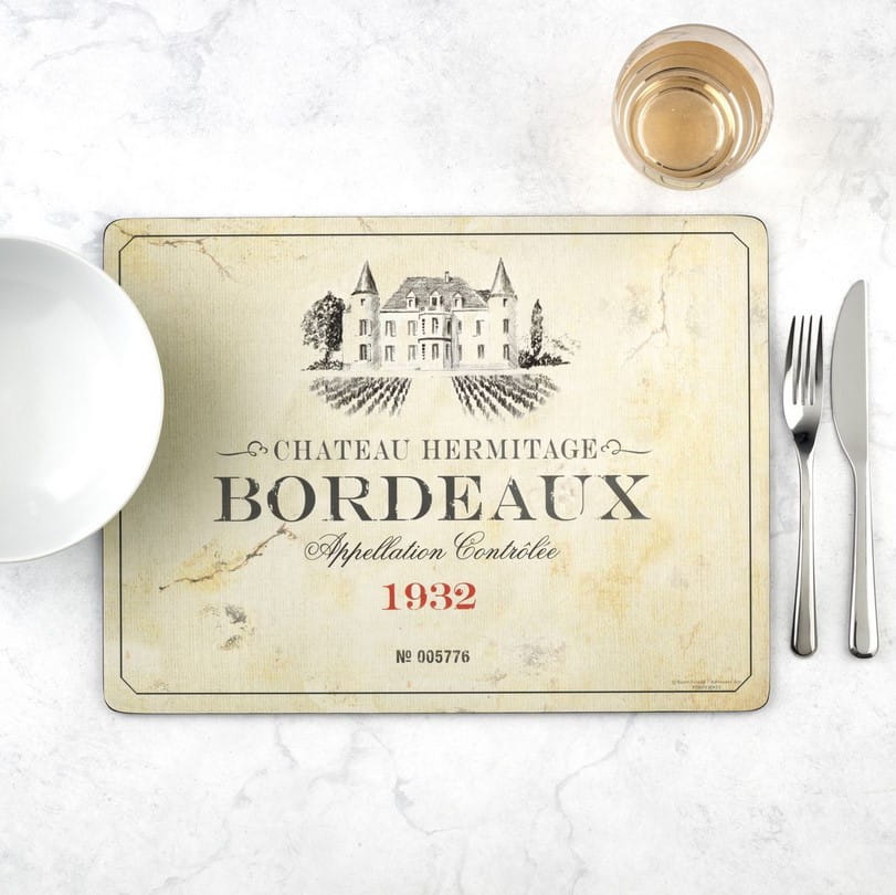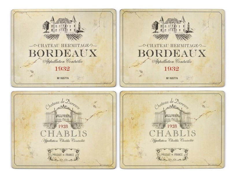 Zestaw 4 eleganckich podkładek stołowych Pimpernel z kolekcji Vin de France to połączenie tradycji brytyjskiego designu i doskonałej funkcjonalności. Podkładki zostały ozdobione motywami etykiet klasycznych francuskich win - Bordeaux i Chablis. Dawne roczniki (1928 i 1932) i tradycyjne stare etykiety wprowadzają nutę nostalgii za światem, który bezpowrotnie przeminął.