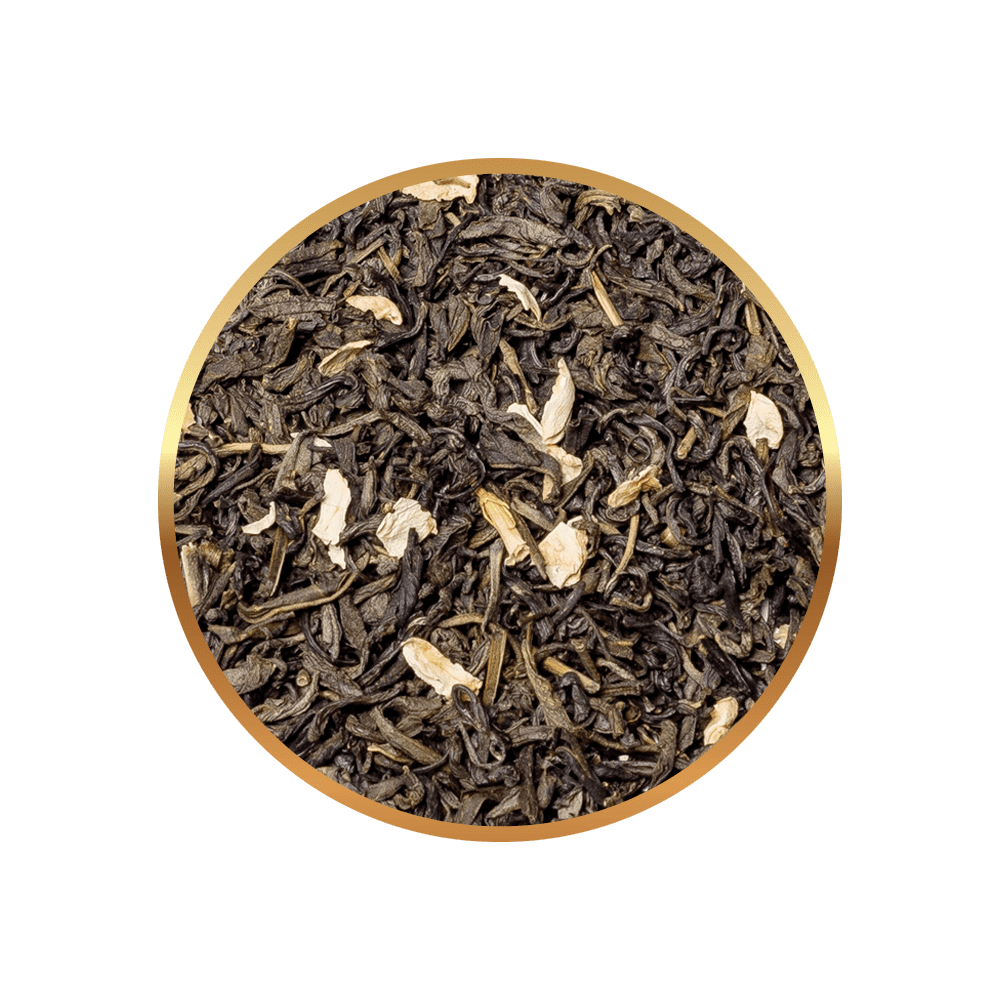 dobra gatunkowa zielona herbata chińska (98%), płatki kwiatów jaśminowca (2%)
