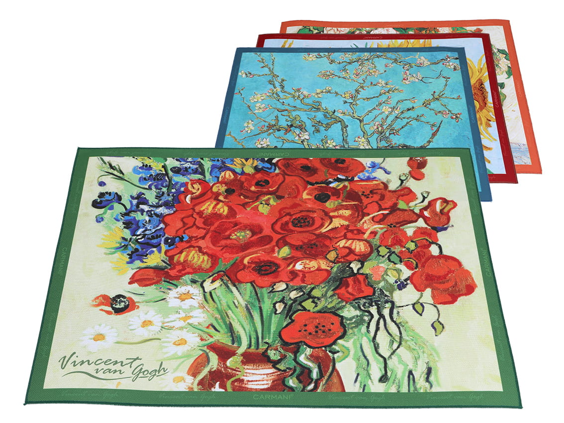Carmani komplet 4 podkładek stołowych 40x29,5 cm z mocnego materiału - zdobionych kwiatowymi motywami z malarstwa Vincenta van Gogha