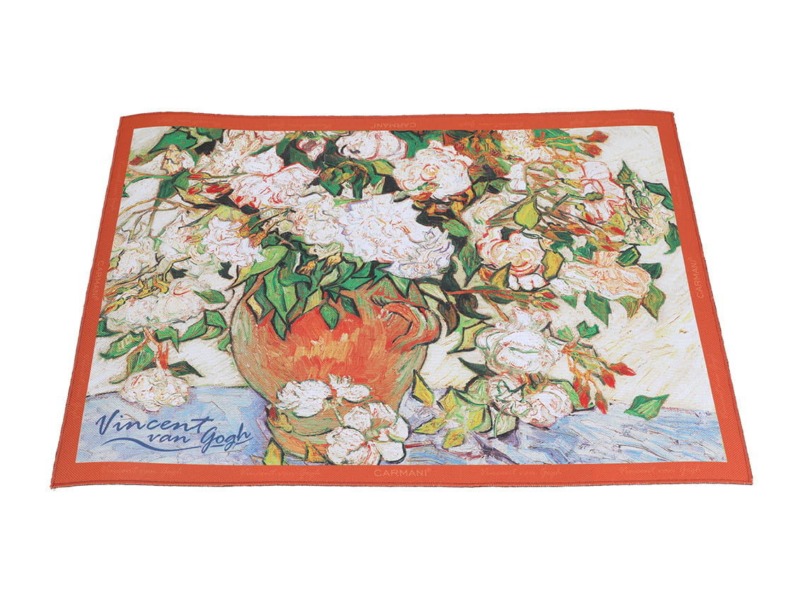 4 podkładki z wysokiej jakości mocnej tkaniny - estetycznej, wygodnej w użytkowaniu i łatwej w czyszczeniu. Projekt każdej z podkładek jest inspirowany innym obrazem van Gogha - wszystkie przedstawiają kwitnące kwiaty.