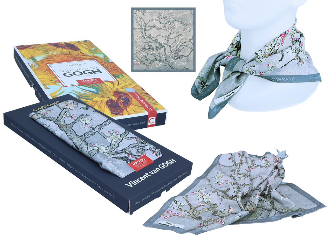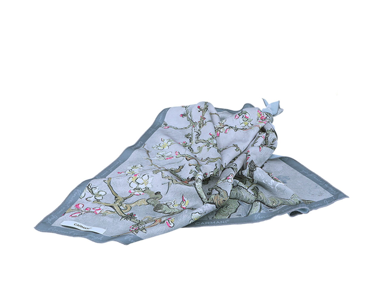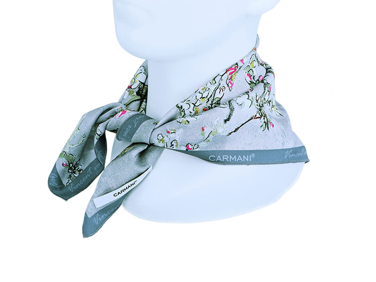 Apaszki CARMANI wykonane są z innowacyjnej tkaniny tamina szlachetna, która pozwala na wykonanie misternych wzorów przy zachowaniu jedwabistego dotyku.