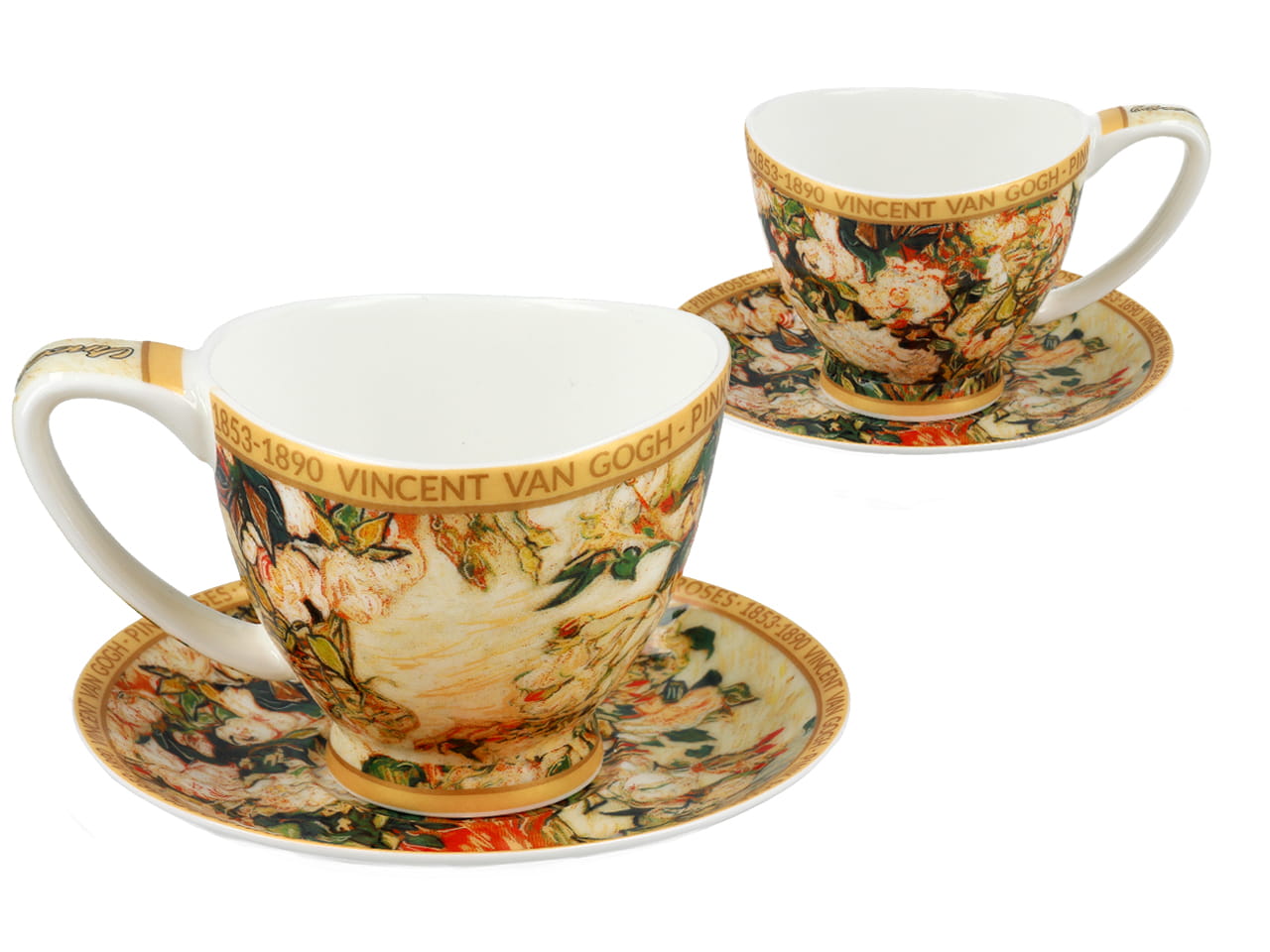 Komplet wysokiej jakości porcelany do herbaty i kawy - filiżanka o poj. 350 ml ze spodkiem, zdobiona popularnym, pięknym motywem, zaczerpniętym z malarstwa europejskiego.