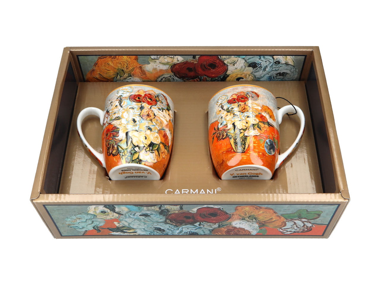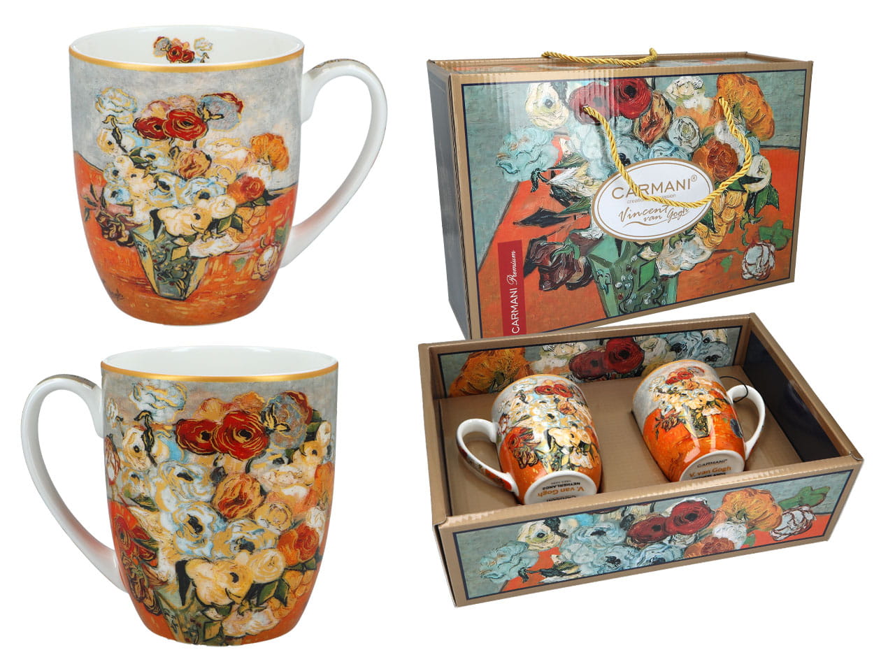 Carmani 2 kubki 400 ml, van Gogh, Róże i zawilce w wazonie