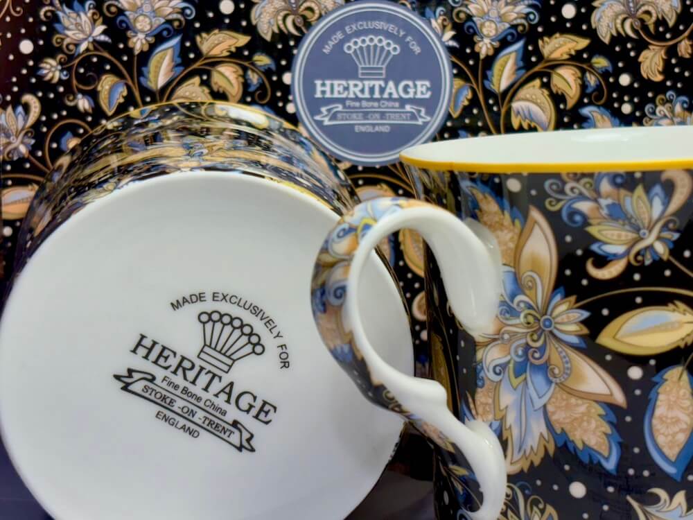 Zestaw czterech kubków Heritage MOONLIGHT to propozycja dla miłośników wyrazistego designu, nawiązującego do brytyjskiej tradycji zdobniczej epoki wiktoriańskiej - czasów aktywności William Morrisa i ruchu Art & Craft. Kubki wykonano z wysokiej jakości porcelany chińskiej - fine bone china, która łączy lekkość, delikatność i dużą trwałość.