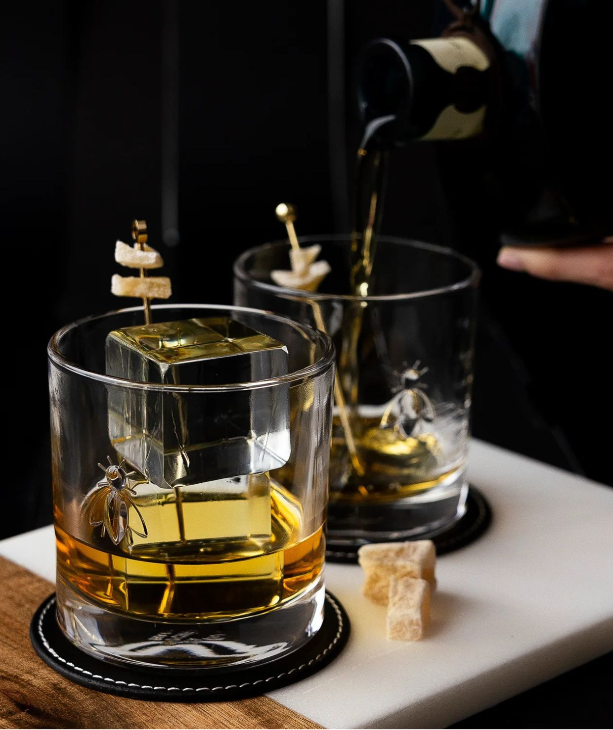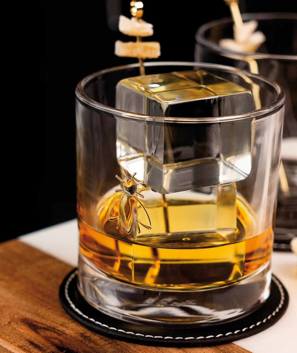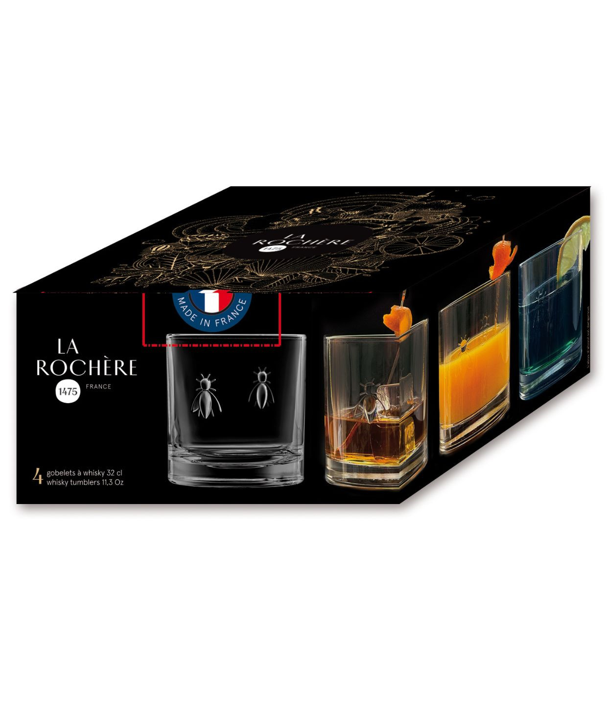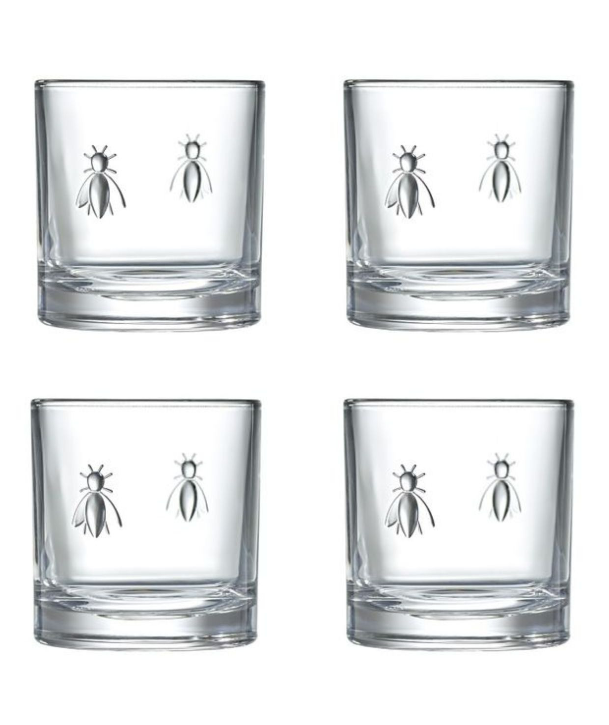 La Rochère Abeille – zestaw 4 szklanek do whisky 320 ml – francuskie szkło tłoczone z motywem pszczoły