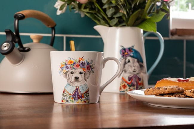 Porcelanowy kubek z kolekcji Tipperleyhill brytyjskiej marki Mikasa to wyjątkowe połączenie wysokiej jakości rzemiosła z radosnym, artystycznym designem. Naczynie zdobi unikalna grafika w stylu ręcznie malowanym, przedstawiająca uroczego szczeniaka w kolorowym, kwiecistym wianku. Stylistyka Tipperleyhill charakteryzuje się lekkością i humorem, co czyni ten kubek nie tylko przedmiotem użytkowym, ale małym dziełem sztuki, które ożywi każde wnętrze. Wykonany z wysokiej jakości porcelany Fine China, produkt wyróżnia się szlachetną bielą, gładką powierzchnią oraz wyjątkową trwałością, idealnie sprawdzając się w intensywnym, codziennym użytkowaniu.