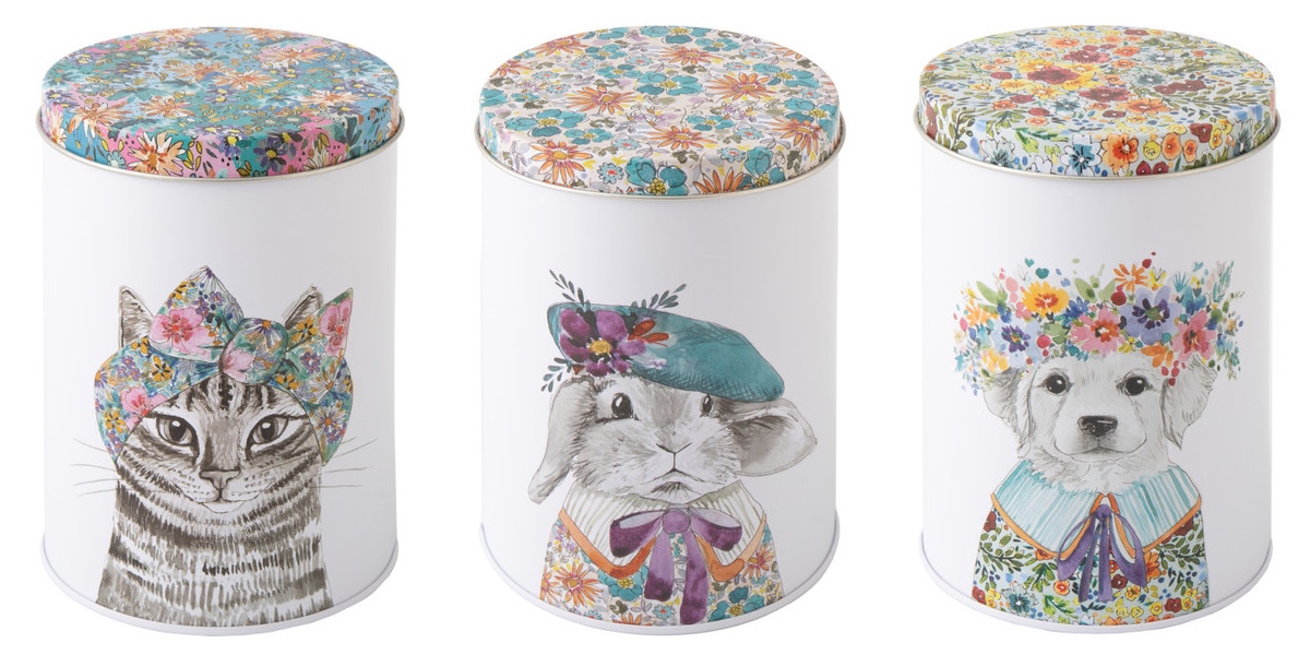 Mikasa Tipperleyhill zestaw 3 puszek metalowych o poj. 1000 ml – motyw: młode zwierzęta i kwiaty