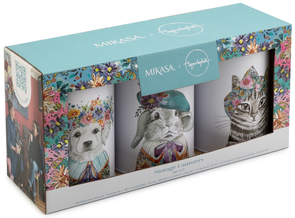Zestaw 3 metalowych puszek z kolekcji Mikasa Tipperleyhill to stylowe połączenie funkcjonalności i sentymentalnego designu w duchu vintage. Każda puszka została wykonana z wysokiej jakości blachy i ozdobiona zachwycającymi, kwiatowymi pokrywkami, które wprowadzają do kuchni radosny, wiosenny akcent. Na puszkach znajdują się wizerunki młodych zabawnych zwierzątek z kwiatami na głowach. Całość zapakowana w dekoracyjne kolorowe pudełko.