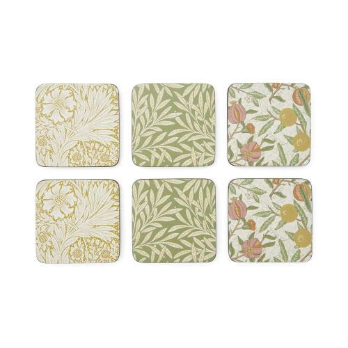 Pimpernel komplet 6 podkładek 10,5 cm x 10,5 cm x 0,5 cm - 3 różne projekty Williama Morrisa