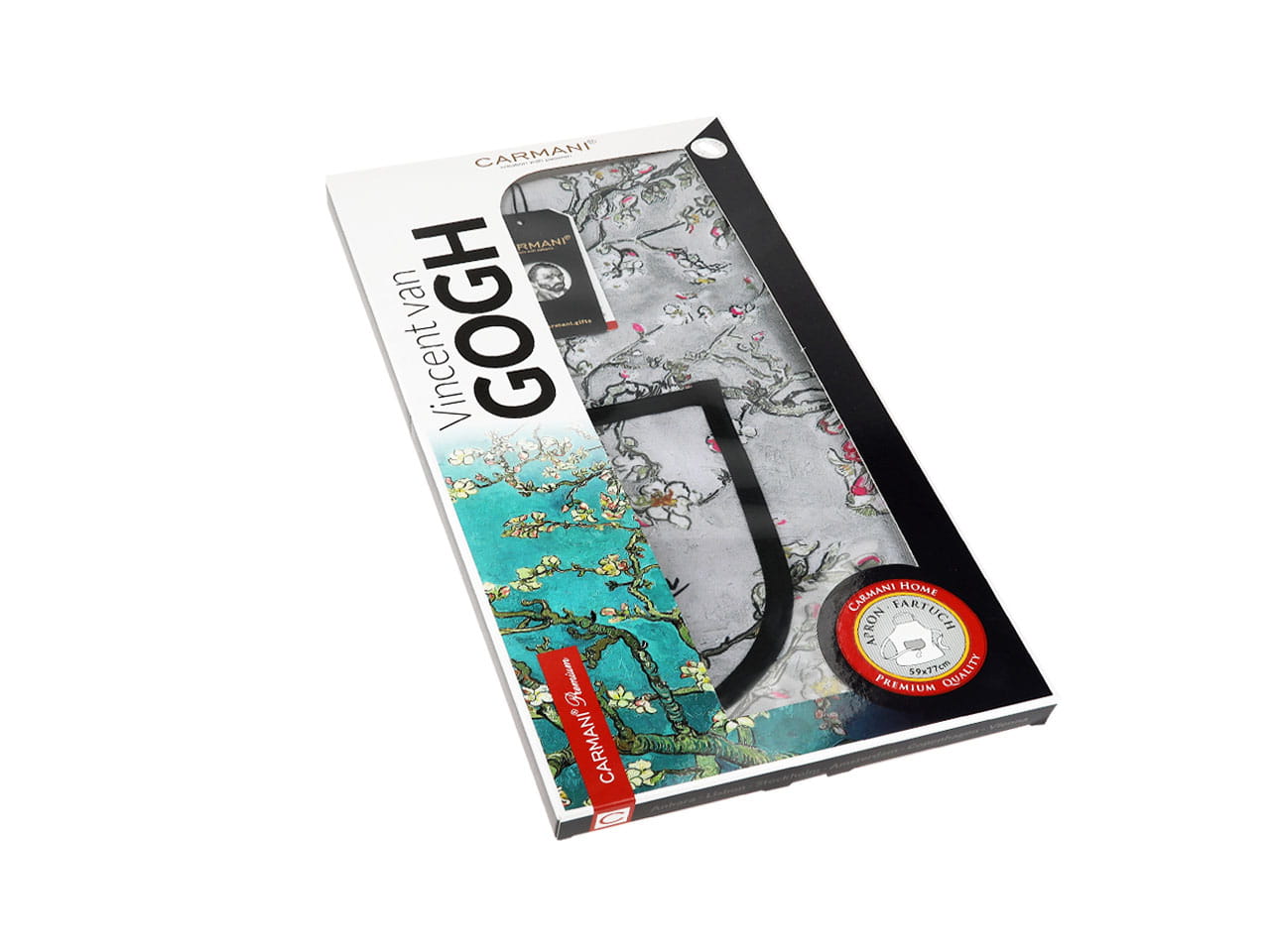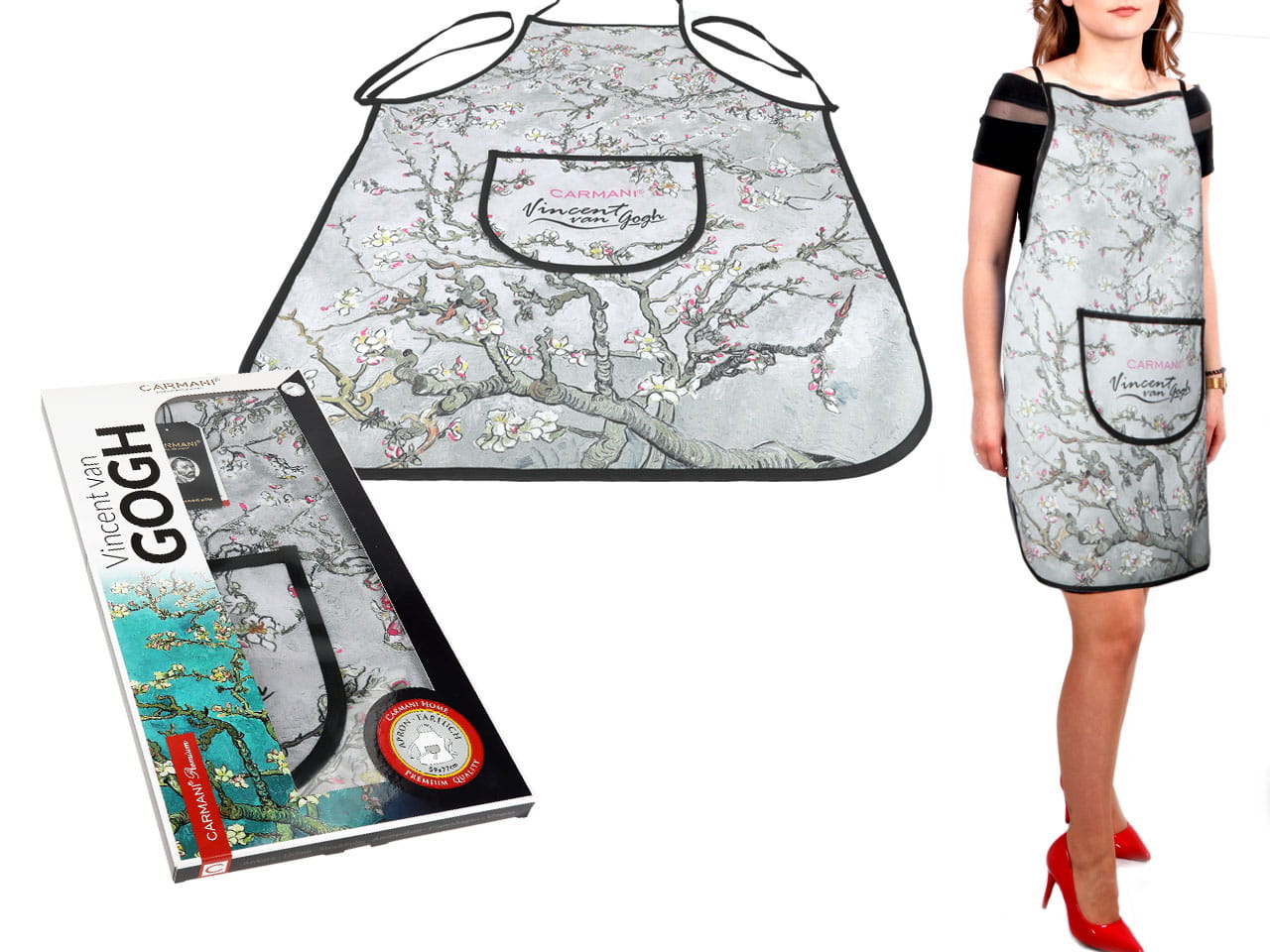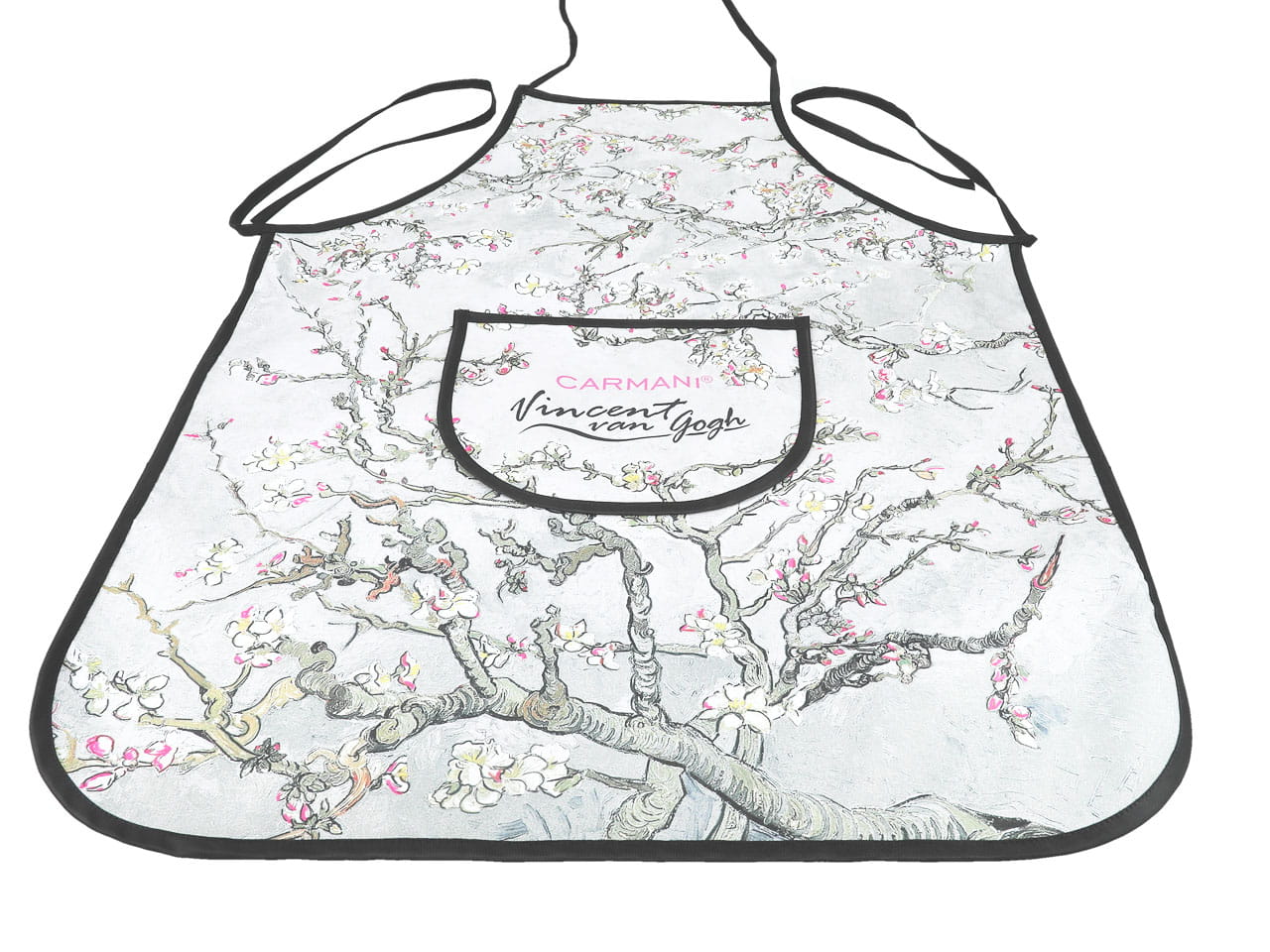 Carmani fartuszek kuchenny 77x59 cm z motywem z malarstwa Vincenta van Gogha (Kwitnący migdałowiec - srebrny)