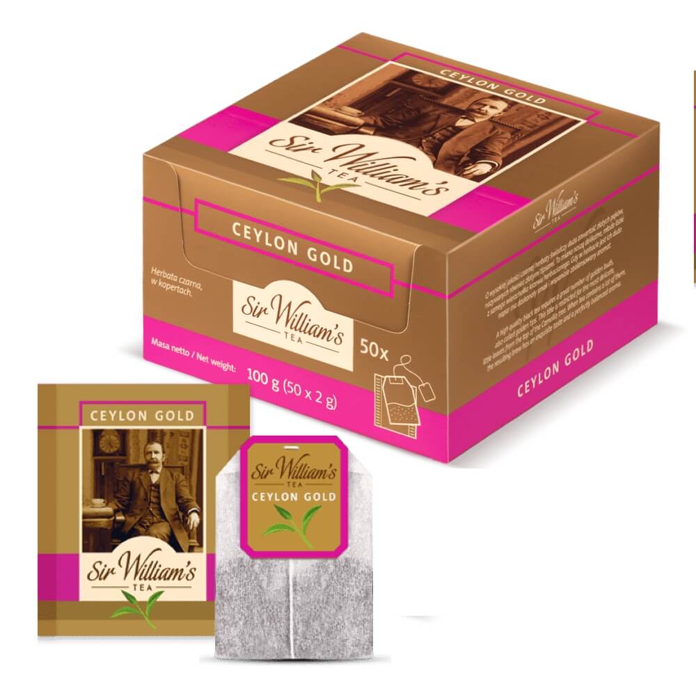 Herbata Sir William's Ceylon Gold 50x2g - czysta czarna z dwoma kubkami 250 ml
