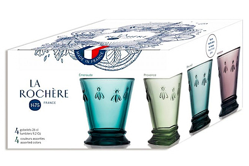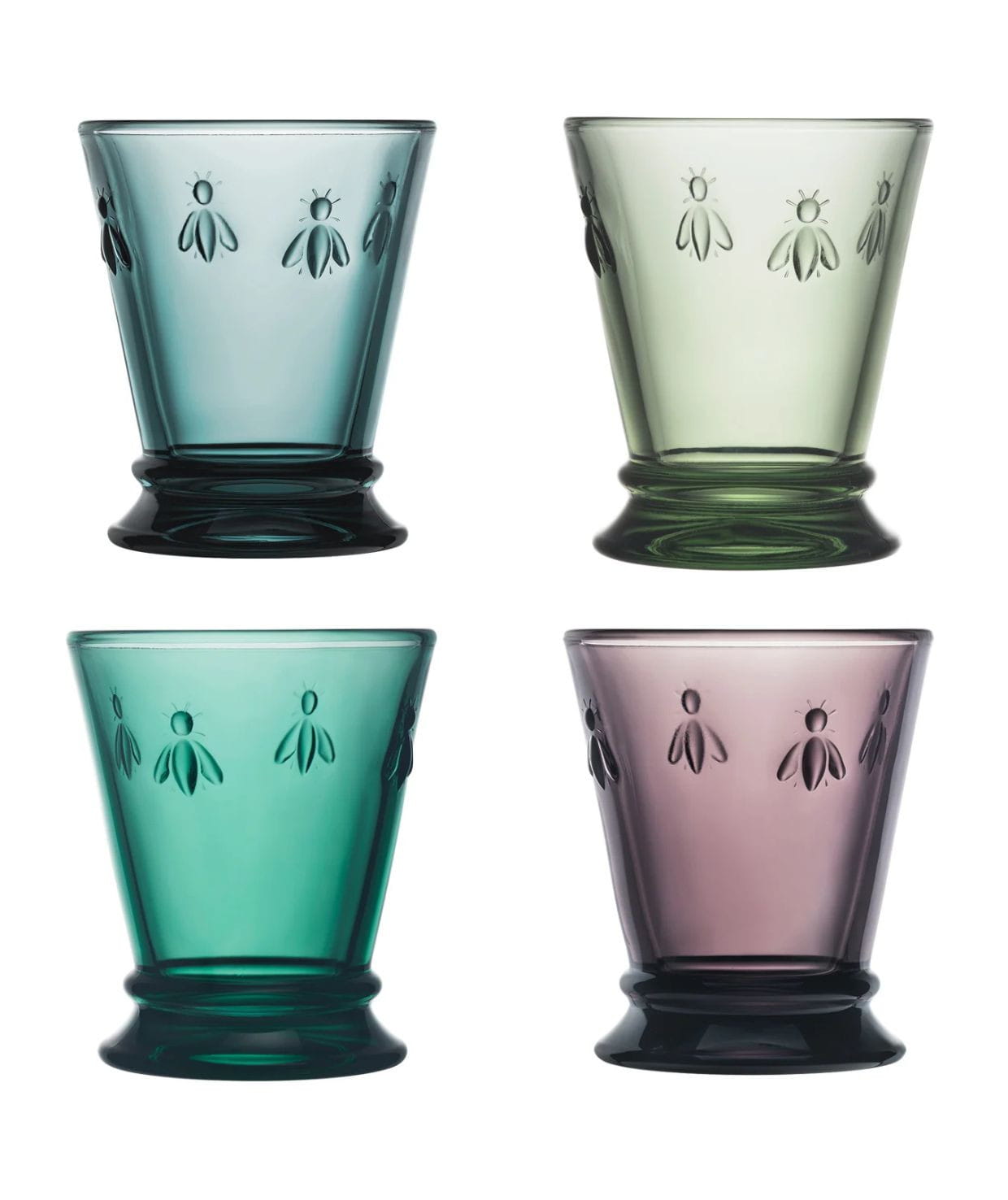 La Rochère Abeille zestaw 4 szklanek 260 ml – francuskie szkło tłoczone z motywem pszczoły, cztery kolory