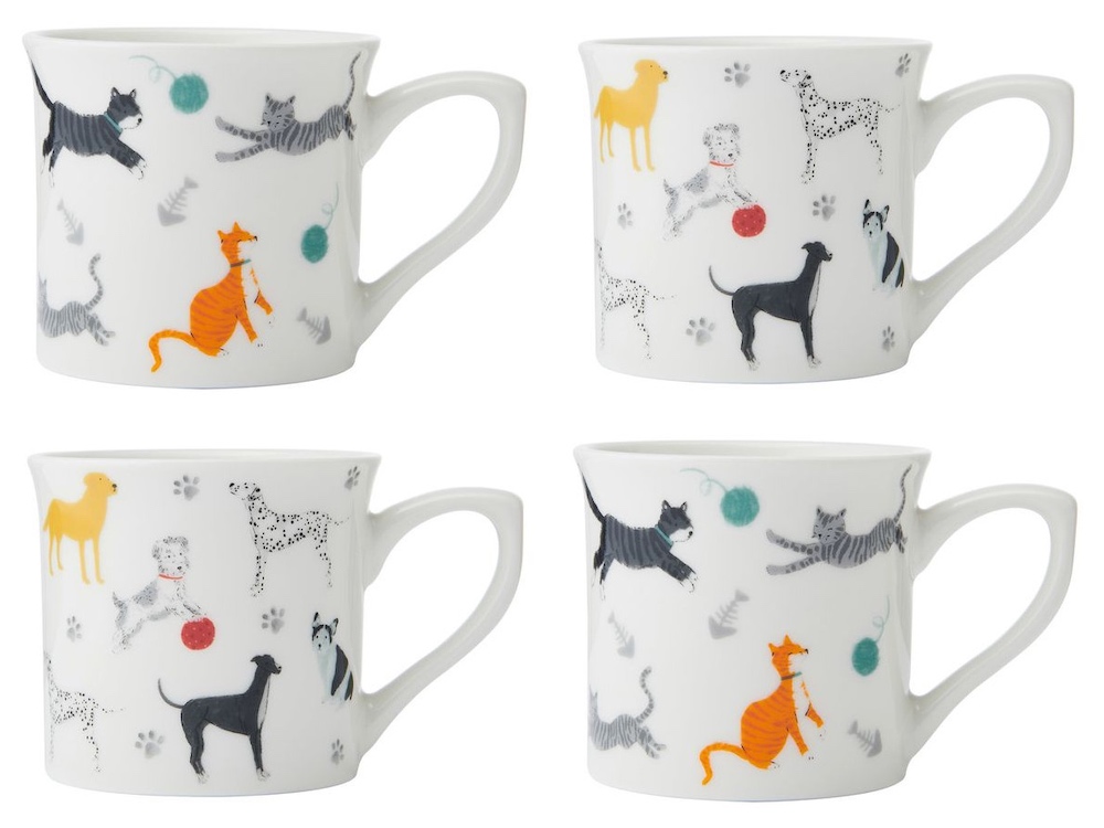 Mikasa Dogs & Cats zestaw 4 kubków porcelanowych 250 ml, motyw: psy i koty