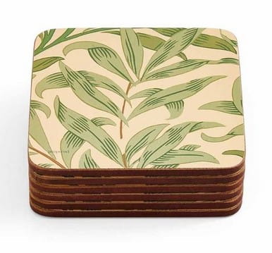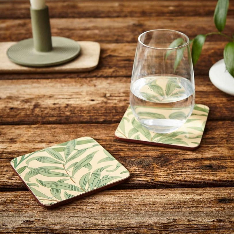 Pimpernel Willow Bough Green – 6 podkładek pod kubki i szklanki 10,5 x 10,5 cm z motywem gałązek wierzbowych Williama Morrisa z 1887 r.