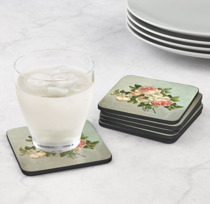 Pimpernel – zestaw 4 podkładek stołowych 10,5 cm x 10,5 cm x 0,5 cm - „Antique Rose” - róże, projekt: Danhui Nai
