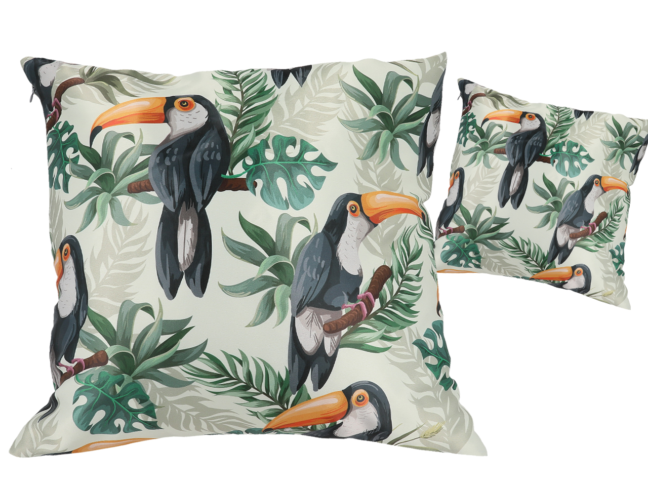 Carmani poduszka dekoracyjna 50x50 cm, z wypełnieniem i zamkiem, z motywem tukanów - nowoczesny wzór