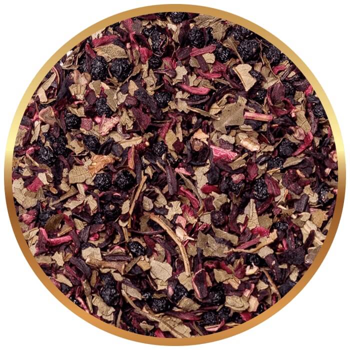 Wysokiej jakości mieszanka owocowa na bazie czarnego bzu, hibiskusa i liści jeżyny, z dodatkiem truskawek i aromatów.