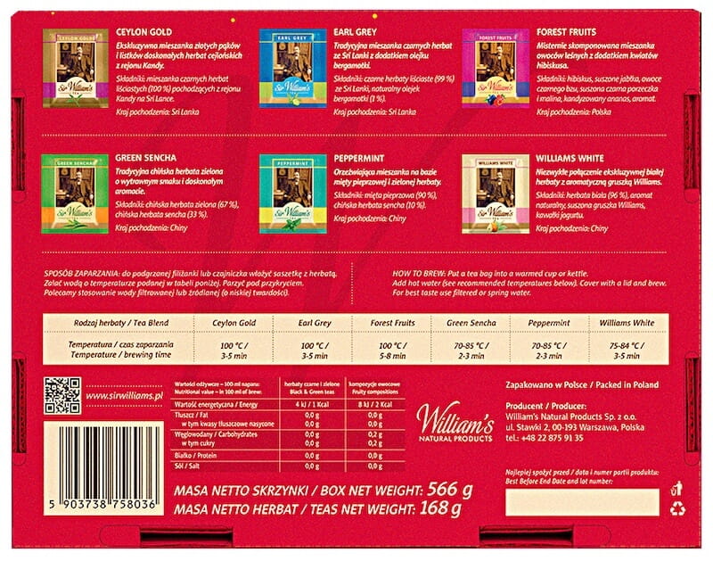 - większy zestaw z tej samej linii herbat - Sir William's Tea 180 herbat,