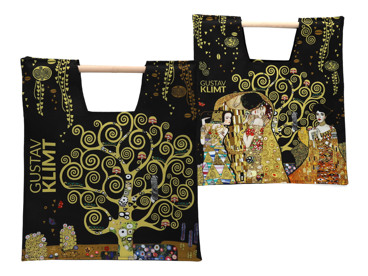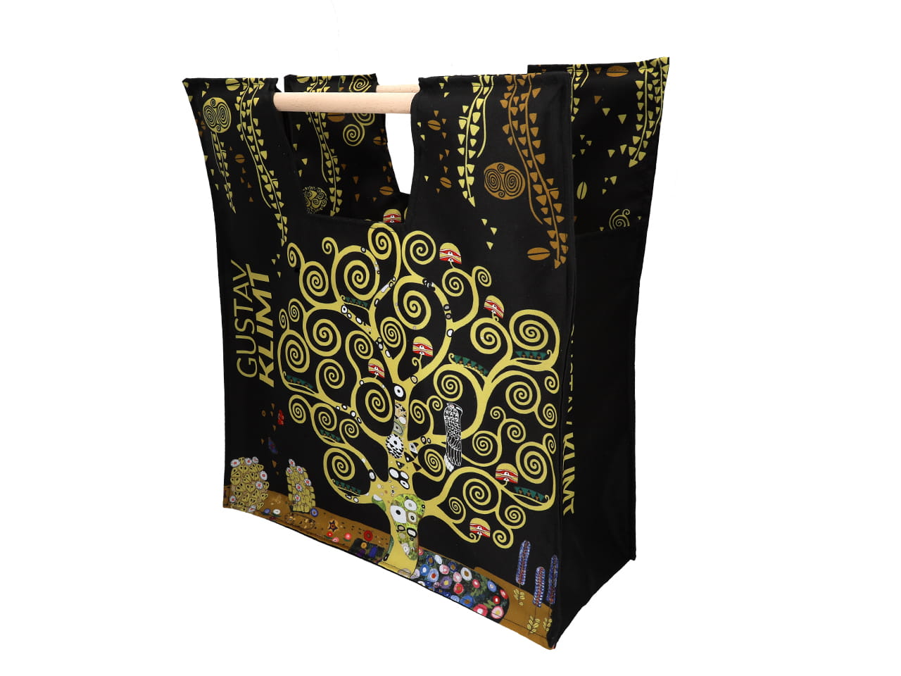 Carmani torba materiałowa 47x42 cm z drewnianym uchwytem, motyw z Gustava Klimta (Drzewo życia)