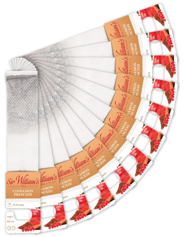Sir William's Royal Taste to linia ekskluzywnych herbat gastronomicznych w podłużnych saszetkach - do parzenia w dzbanku Sir William's Duo lub kubkach na stopce z logotypem Sir William's Royal Taste, zabezpieczonych przed starzeniem się foliowym opakowaniem (każda saszetka pakowana osobno).
