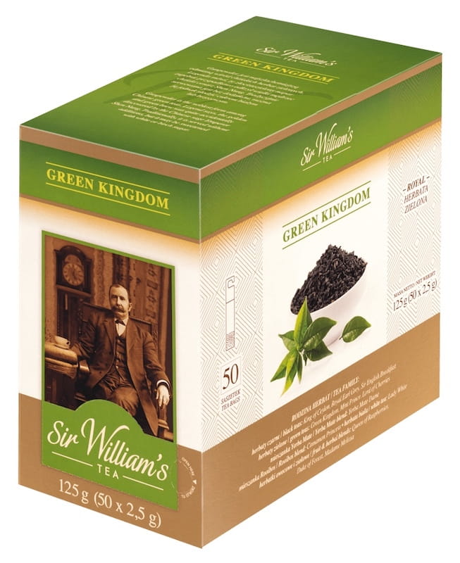 - 50 saszetek (2,5g) herbaty Sir William's Royal Taste Green Kingdom - czysta zielona, typu gunpowder